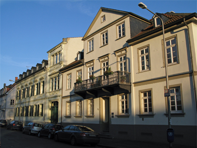 Gegenüber befindet sich die Rückseite des Marstalls des Karpfenhofs und direkt daneben - ebenfalls zum Karpfenhof gehörend - das Verwalterhaus des Biebricher Schlosses, Geburtshaus des Kulturhistorikers und Schriftstellers Wilhelm Heinrich von Riehl. Wiederum nur wenige Schritte weiter stoßen wir auf der gegenüberliegenden Seite der Elisabethenstraße an der Ecke zur Straße Am Schlosspark auf die Alte Schule von Biebrich.